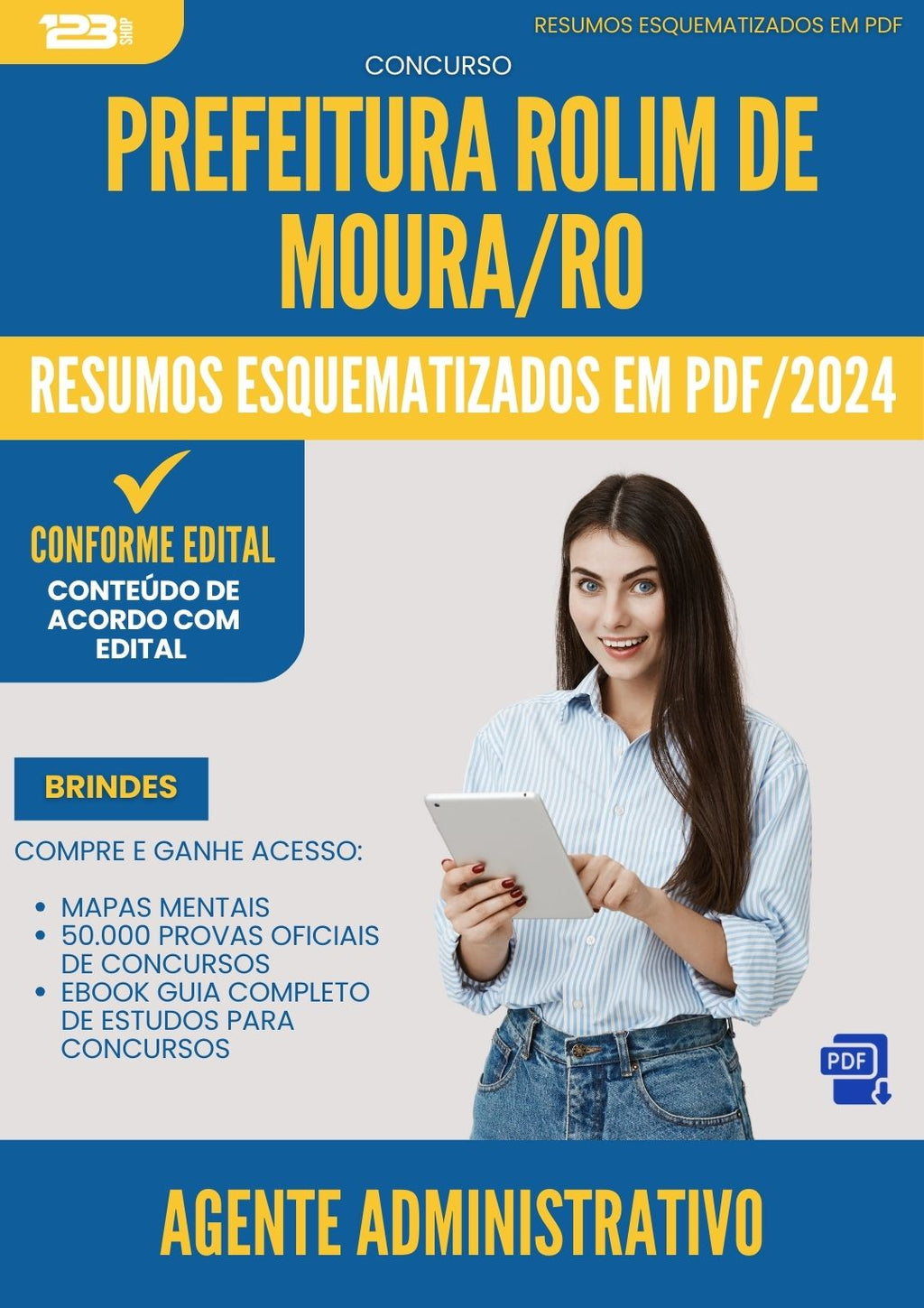Resumos Esquematizados para Concurso Apostila Agente Administrativo da Prefeitura Rolim De Moura Ro 2024 - Conteúdo de Acordo com Edital